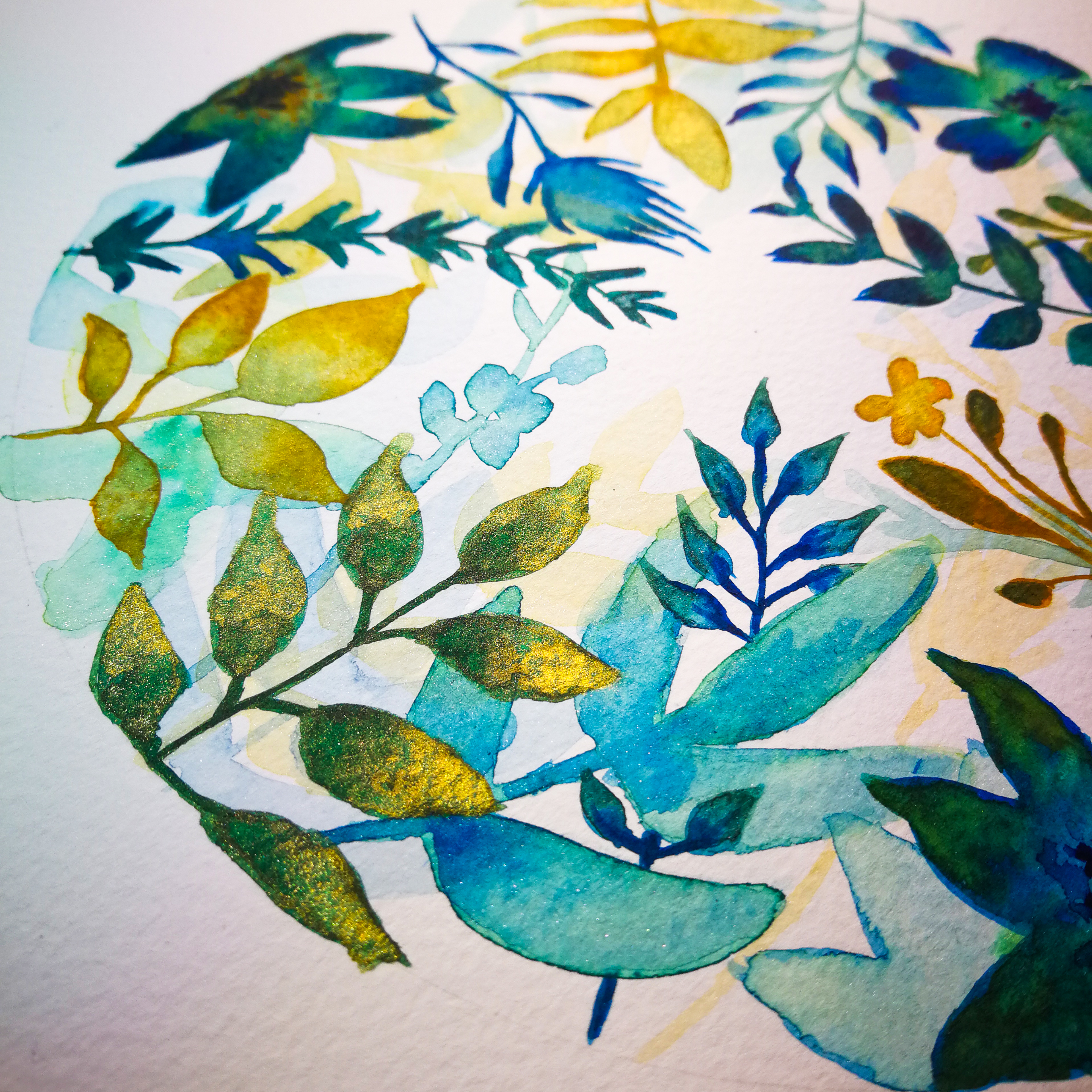 Una de las técnicas que disfruto utilizar en mis obras es el uso de tintas metalizadas, las cuales añaden un toque de elegancia y brillo a mis ilustraciones. Estas tintas aportan un efecto visual especial, creando un juego de luces y sombras que realza los detalles y resalta la textura de las plantas.